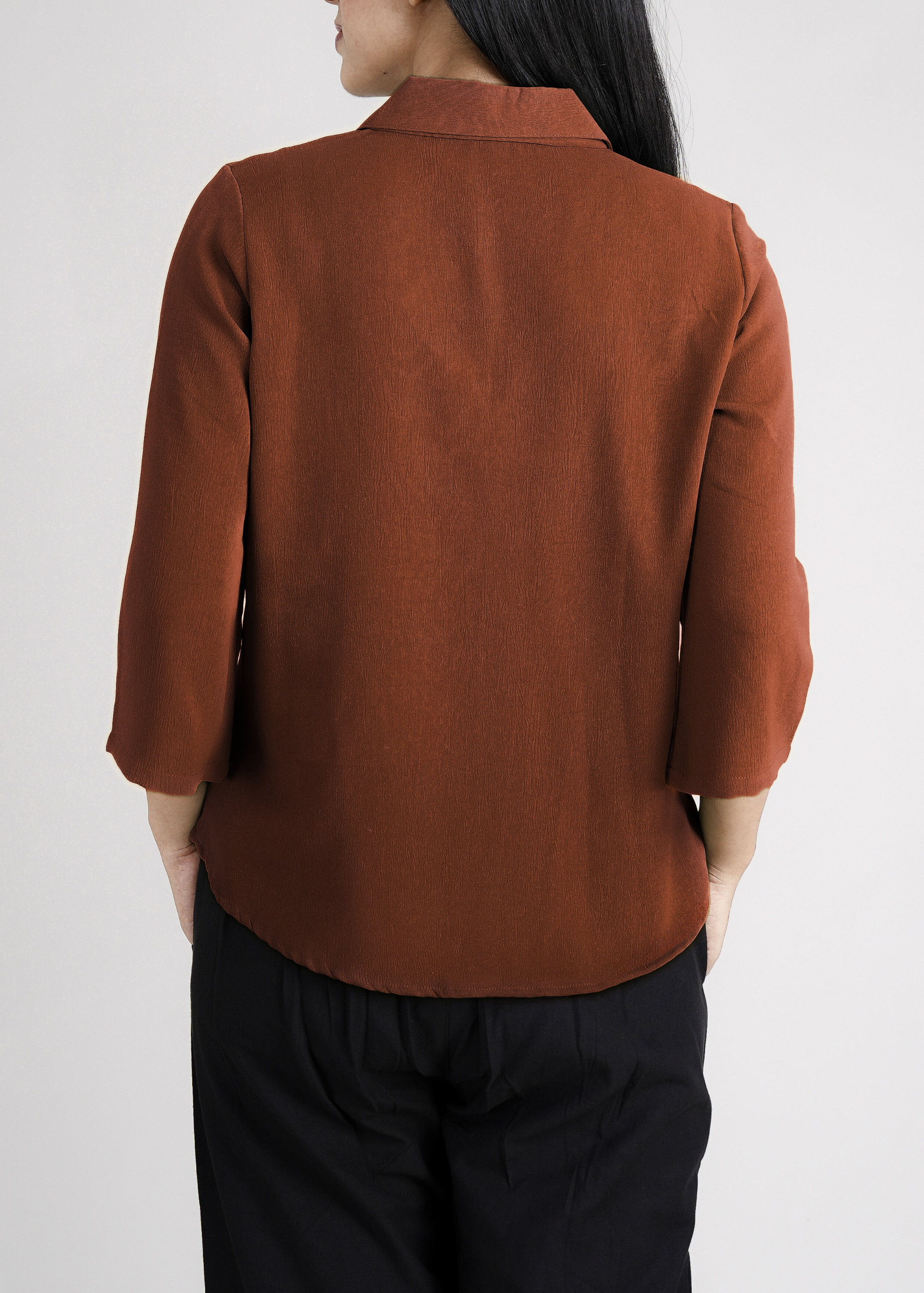 Elevate your workwear with this Women’s Formal Shirt, crafted from a premium polyester-spandex blend that offers the perfect amount of stretch and a convenient non-iron finish for effortless care. Designed with a sophisticated hammered texture and a classic collar, it delivers a crisp, polished look ideal for any professional setting. The modern 3/4th sleeves add a contemporary edge, while the subtle, natural color palette makes it a versatile addition to your wardrobe—perfect for busy days when you want to look put-together without the fuss.