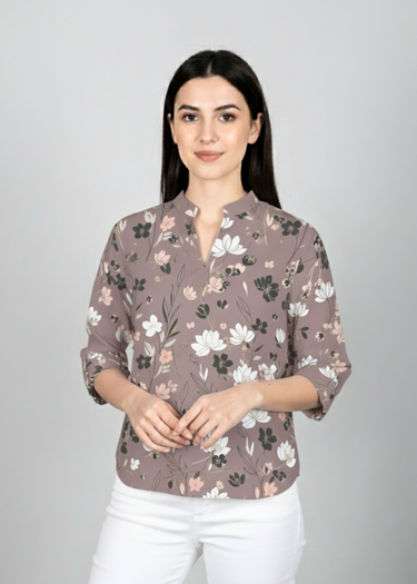 Add a touch of elegance to your wardrobe with this Printed Satin Shirt Top for Women. Crafted from premium satin fabric, this shirt-style top features a soft sheen and smooth texture for a luxurious feel. The graceful print, V-notch neckline, and 3/4th sleeves make it perfect for office wear, brunches, or casual outings.