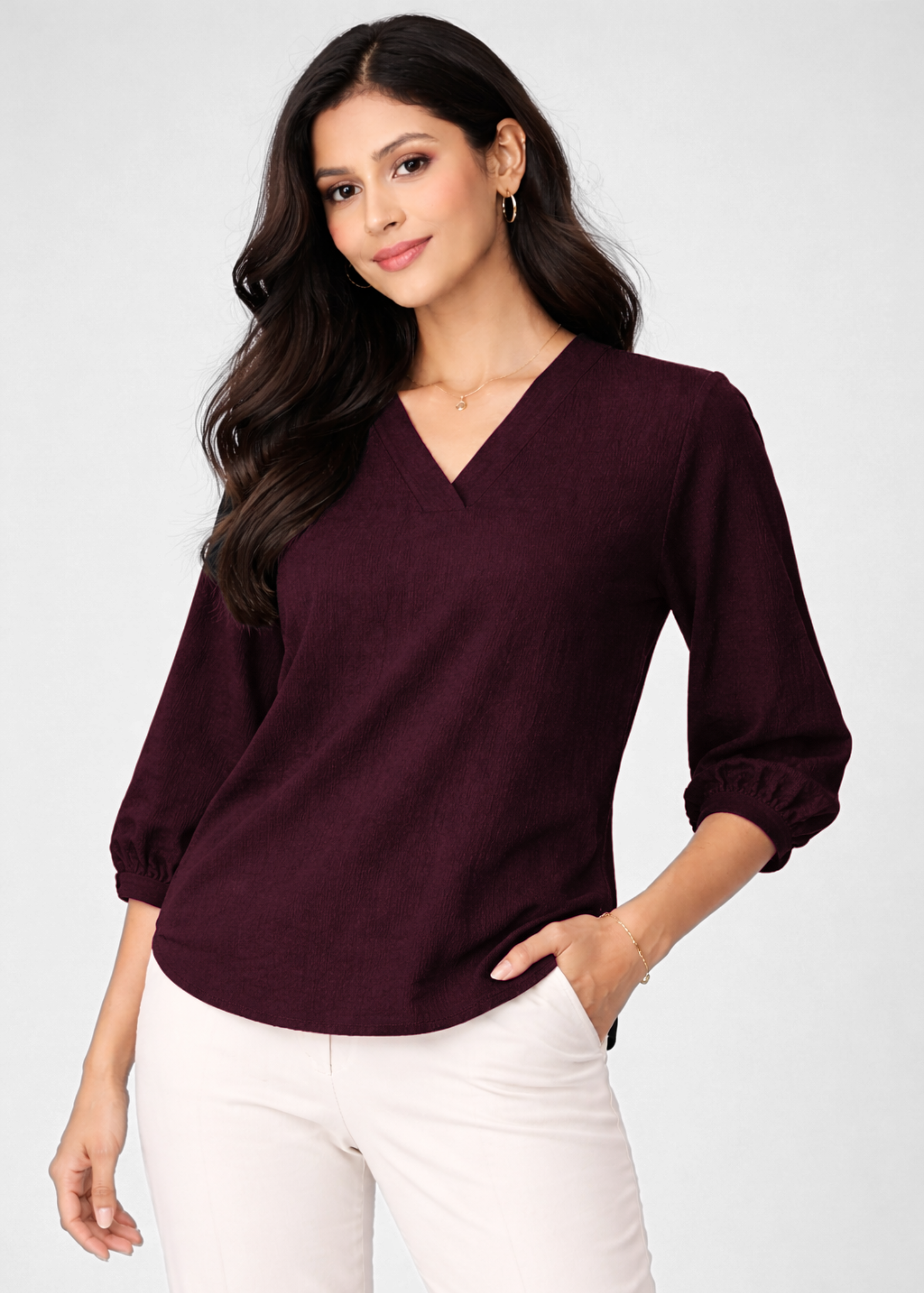 Women Textured V-Neck Top