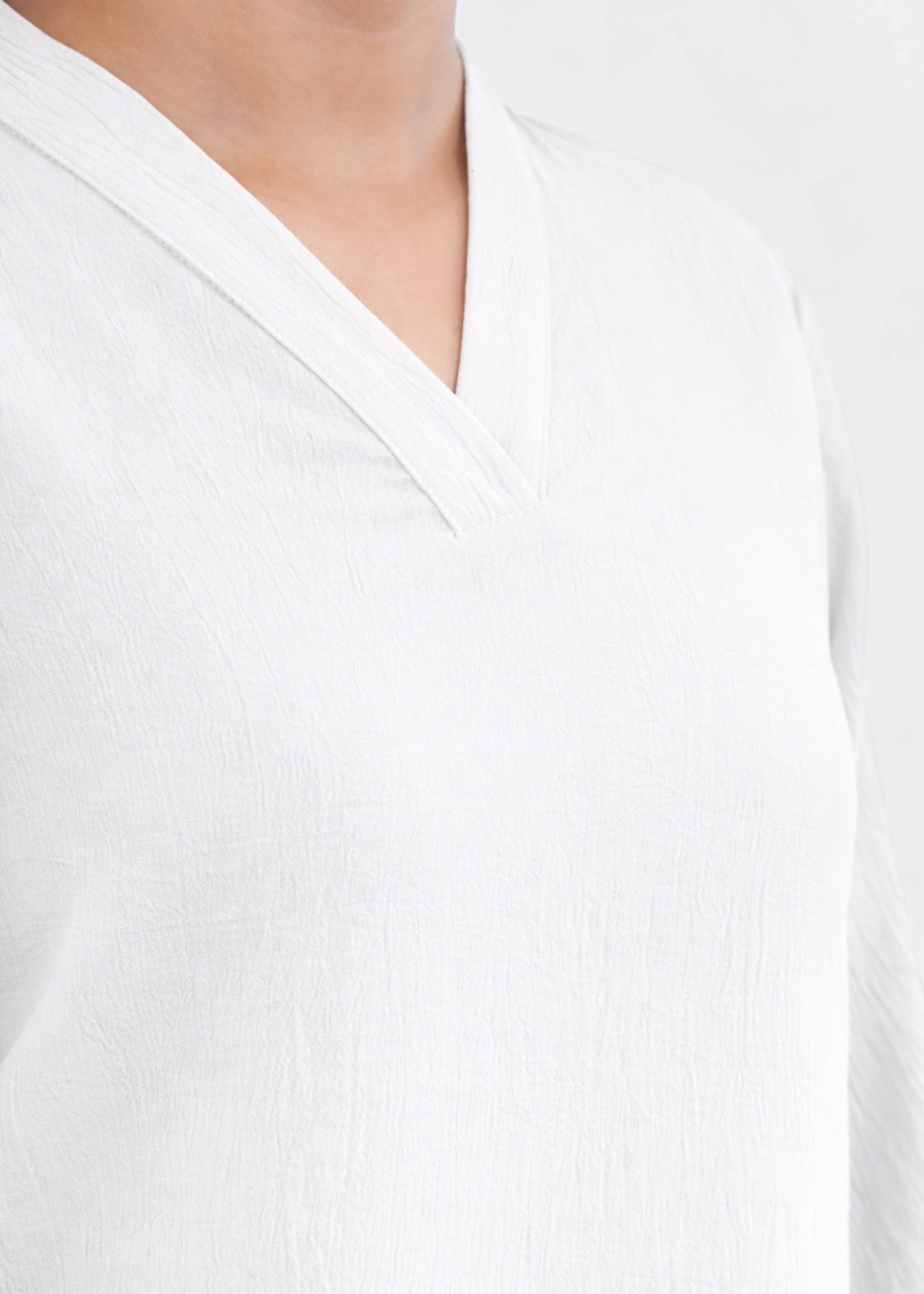 V-neck with a clean banded collar